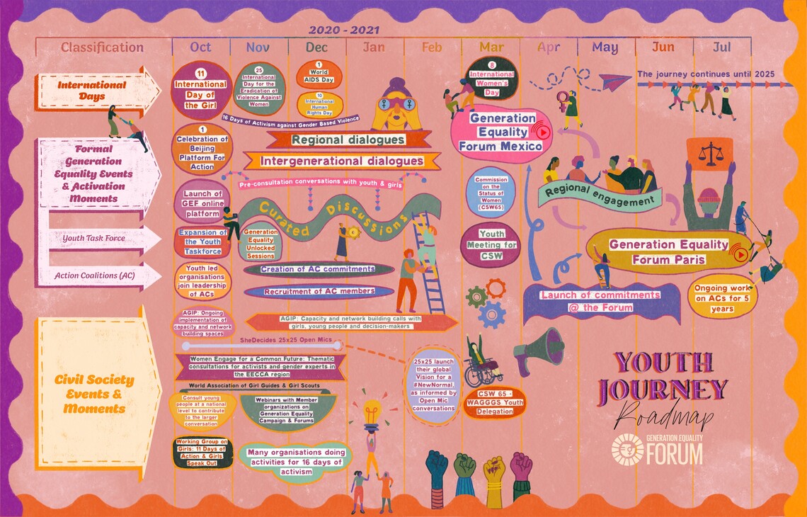 We invite you to join us in the Generation Equality Youth Journey! In the coming months we will call for action on gender equality through the Generation Equality Forum and the six Action Coalitions. It is critical that young people and girls' voices sit at the heart of and are the driving force for this call to action.