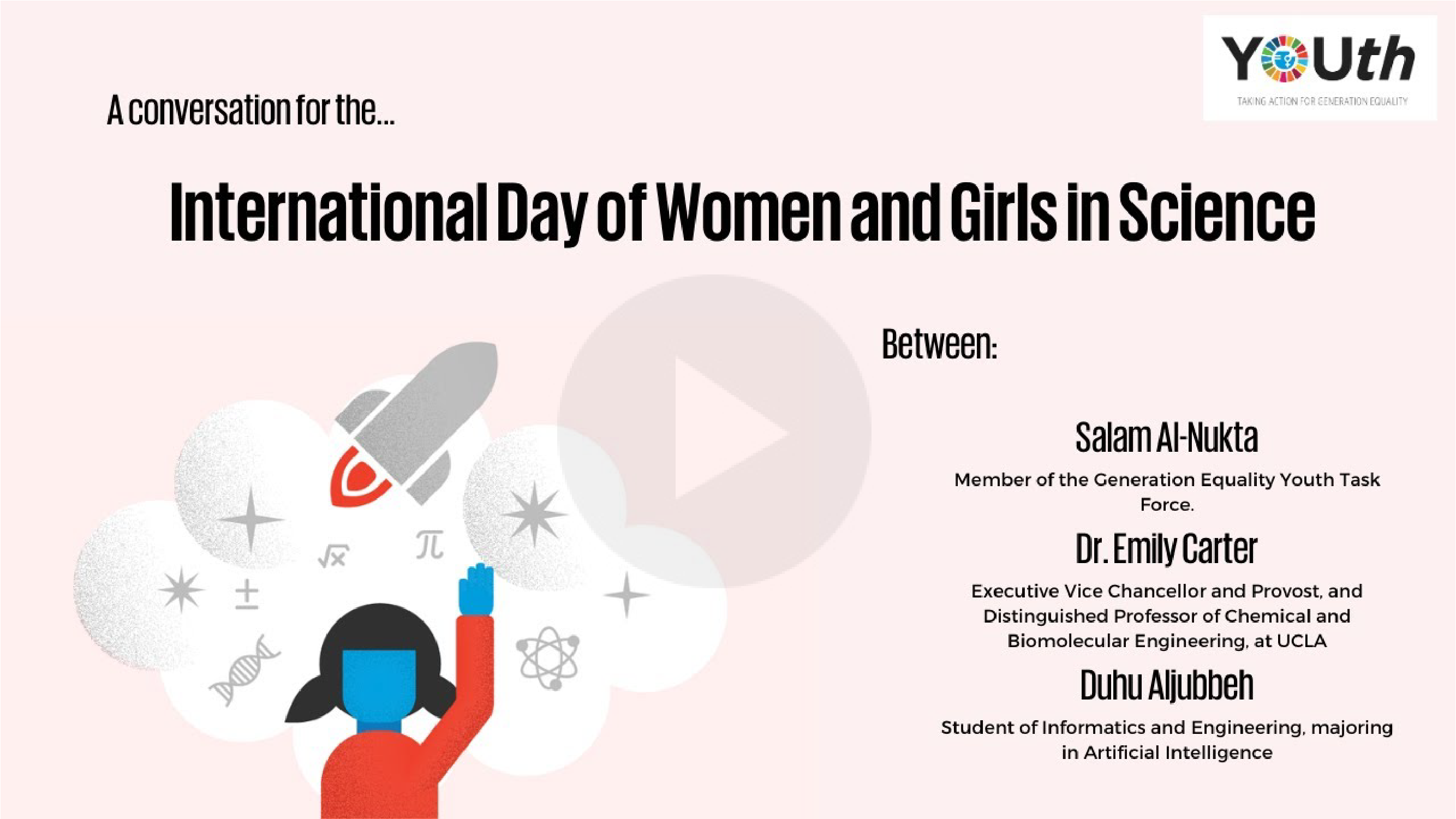 Dr. Emily Carter, from The University of California Los Angeles (UCLA); and Duhu Aljubbeh, a twenty-one-year-old student of Informatics and Engineering, based in Syria; engaged in a video conversation on challenges women and girls face in pursuing careers in STEM.